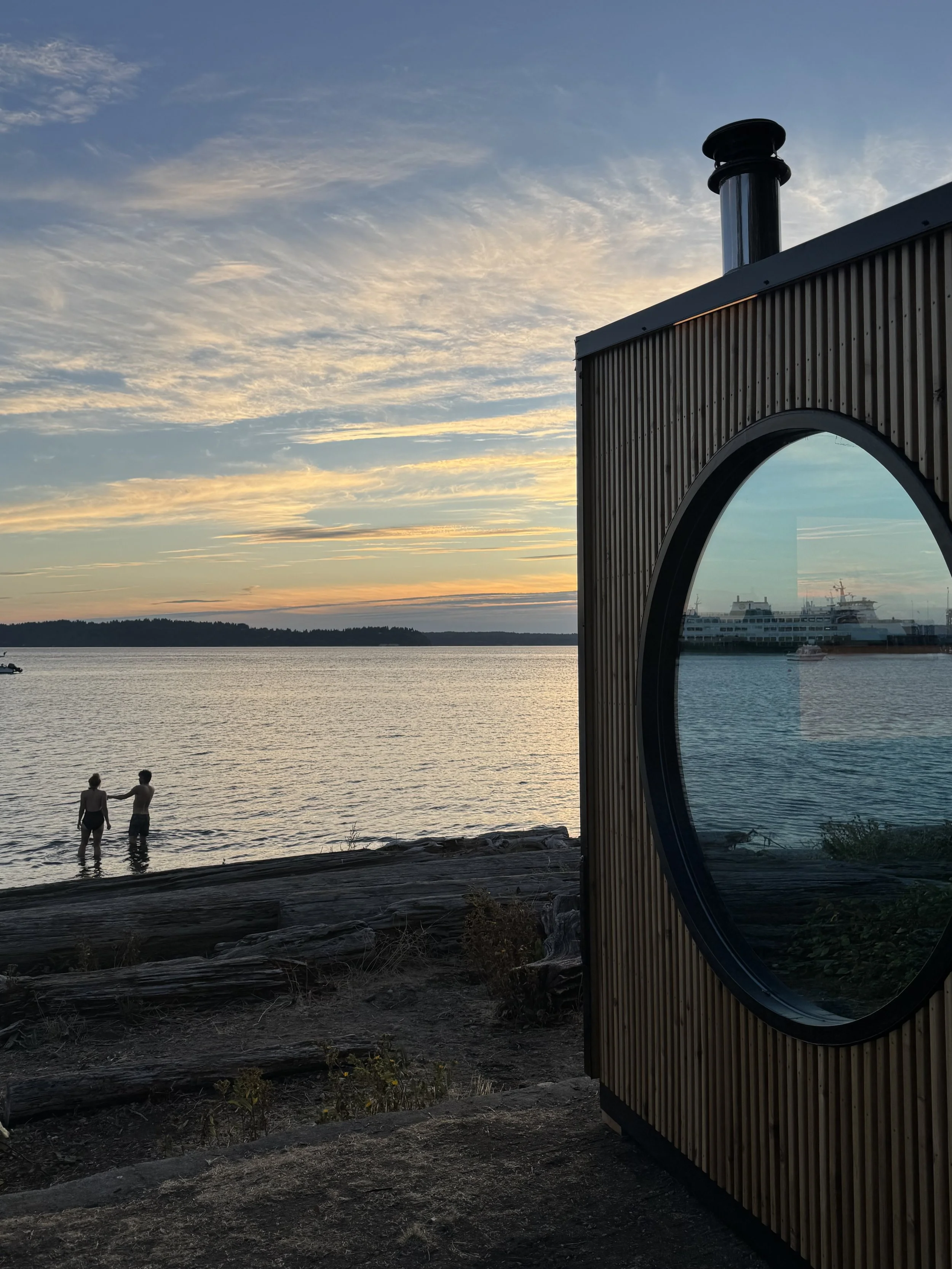 Tucked between towering evergreens and Puget Sound, our wood-fired mobile sauna brings warmth to one of Seattle’s most beloved parks.