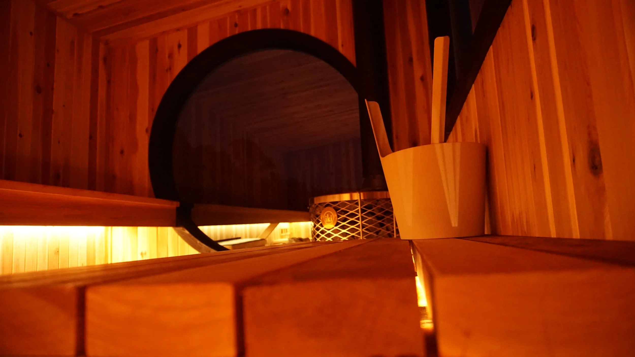 We’re rocking an iki wood-fired stove, which means you get that classic, crackling, cozy sauna.