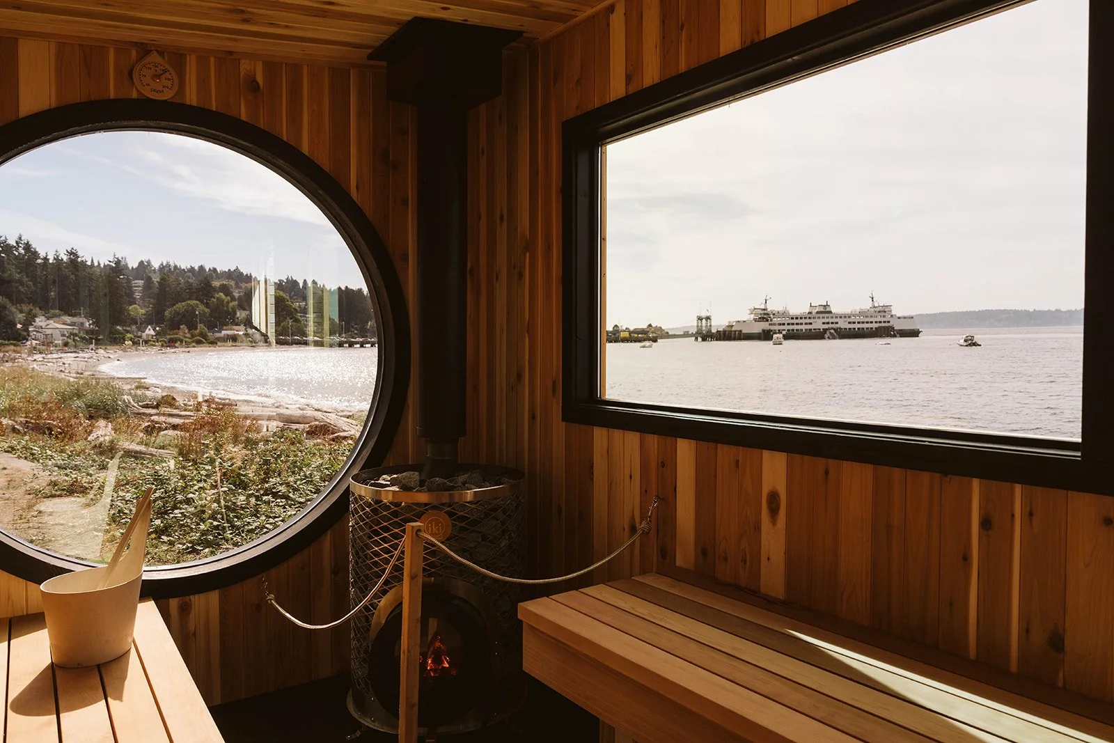 We’re rocking an iki wood-fired stove, which means you get that classic, crackling, cozy sauna.